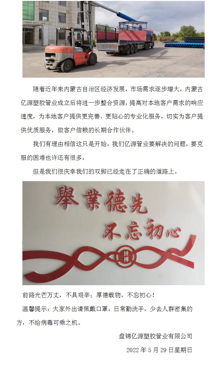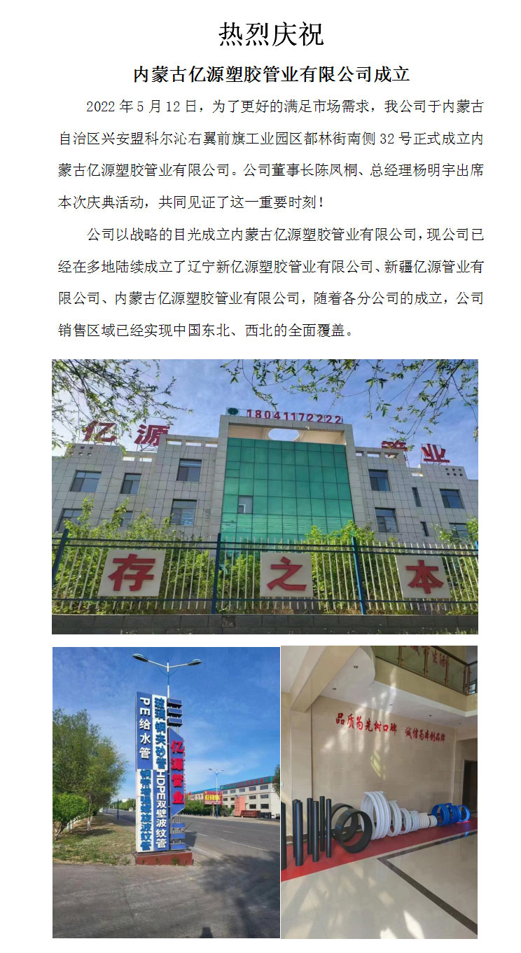 【熱烈慶祝內(nèi)蒙古億源塑膠管業(yè)有限公司成立】